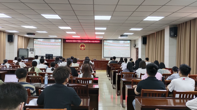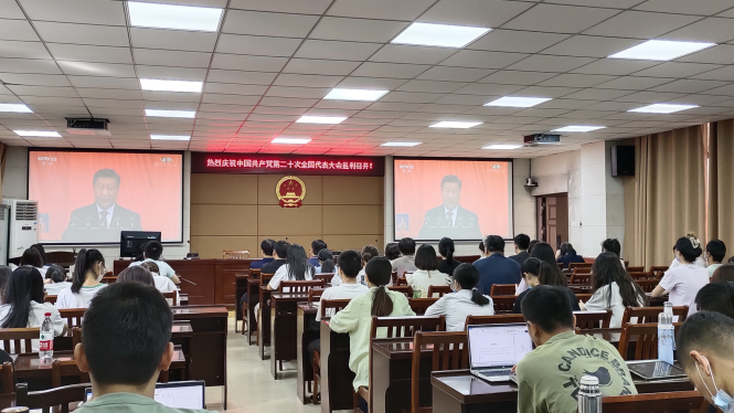 2022年10月16日上午10时,中国共产党第二十次全国代表大会在北京人民大会堂隆重开幕。为深刻学习会议内容和会议精神,加强党性修养,坚定初心使命,太阳集团城网站2017第一时间组织师生代表在太阳集团城网站2017201教室收看大会直播,认真聆听习近平同志代表第十九届中央委员会向大会作的报告。学院党政班子成员、各党支部书记,以及部分师生党员代表到场观看直播。