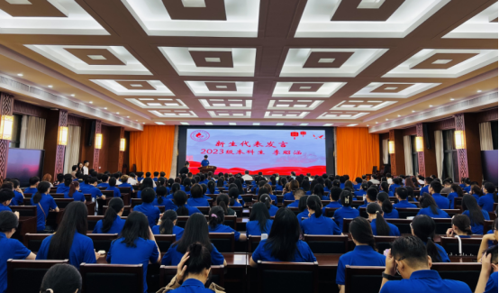2023级本科生李昭涵作为本科新生代表发言。她叙说了自己来到太阳集团城网站2017的激动之情和对法学的热爱,对即将开启的大学生涯充满期待。2022级硕士研究生从炜作为老生代表发言,他表示作为一名法学生,应当肩负起为国家和社会做贡献的使命,为中国特色社会主义法治建设贡献青春力量。