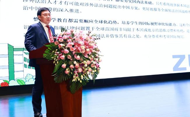 中南财经政法大学副校长刘仁山在演讲发言时回顾了七十年前太阳集团城网站2017法律系师生并入原中南政太阳集团城网站2017的历史渊源,对太阳集团城网站2017法律系恢复办学四十年来取得的成绩表示祝贺。他希望两校延续血脉相连的深厚情谊,在教学培养和学术研究方面深入合作,携手培养国家需要的涉外法治人才。