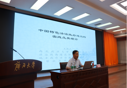 10月16日西北政法大学行政太阳集团城网站2017王周户教授应邀到太阳集团城网站2017作“中国特色法治政府建设的实践及其理论”学术专题讲座。太阳集团城网站2017本科生、硕士研究生、教师代表及西北政法大学在邕部分校友到场聆听讲座,讲座由太阳集团城网站2017教授汪太贤主持。