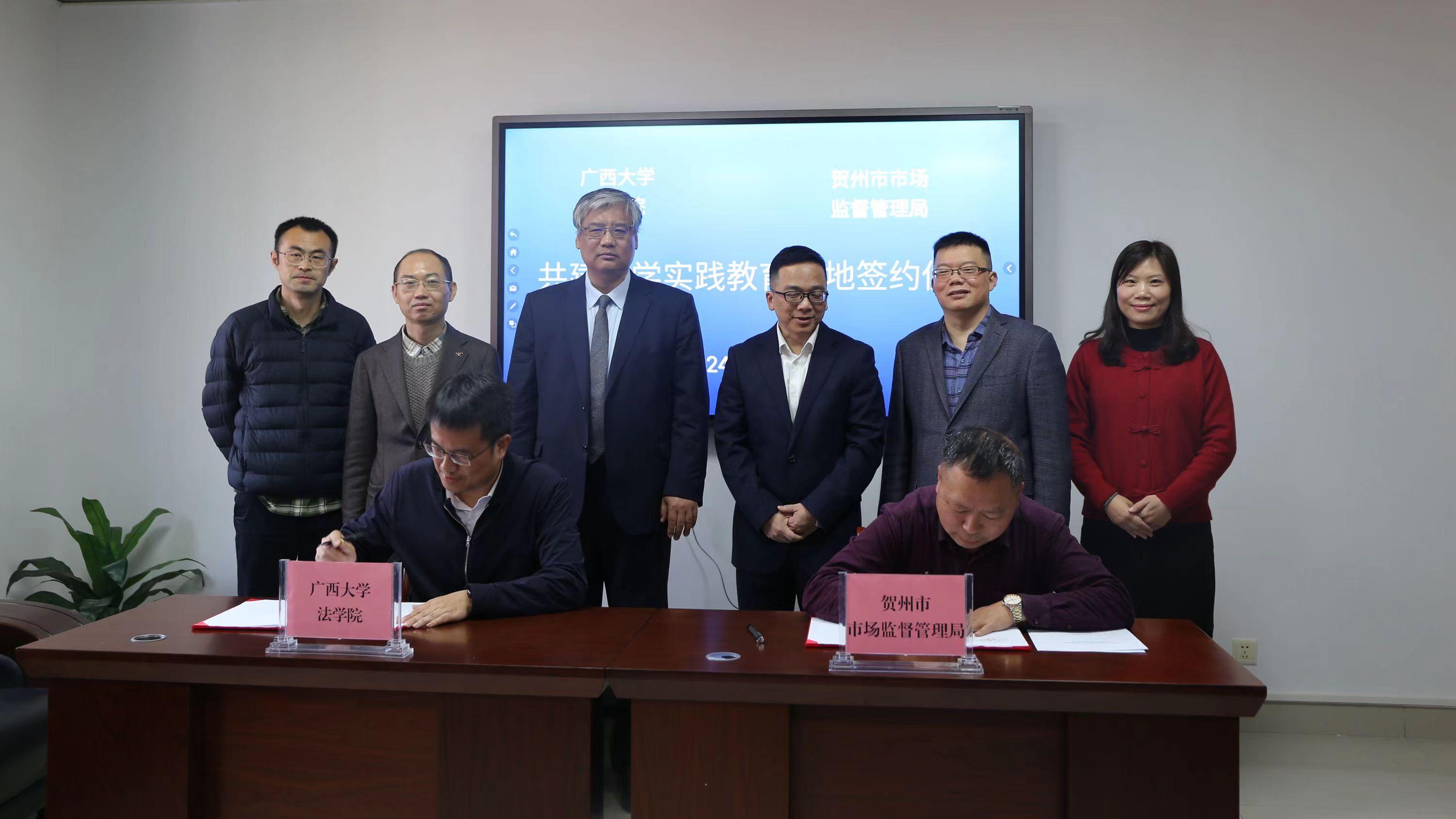 图:太阳集团城网站2017与贺州市市场监管局举行共建法学实践教育基地协议签约仪式