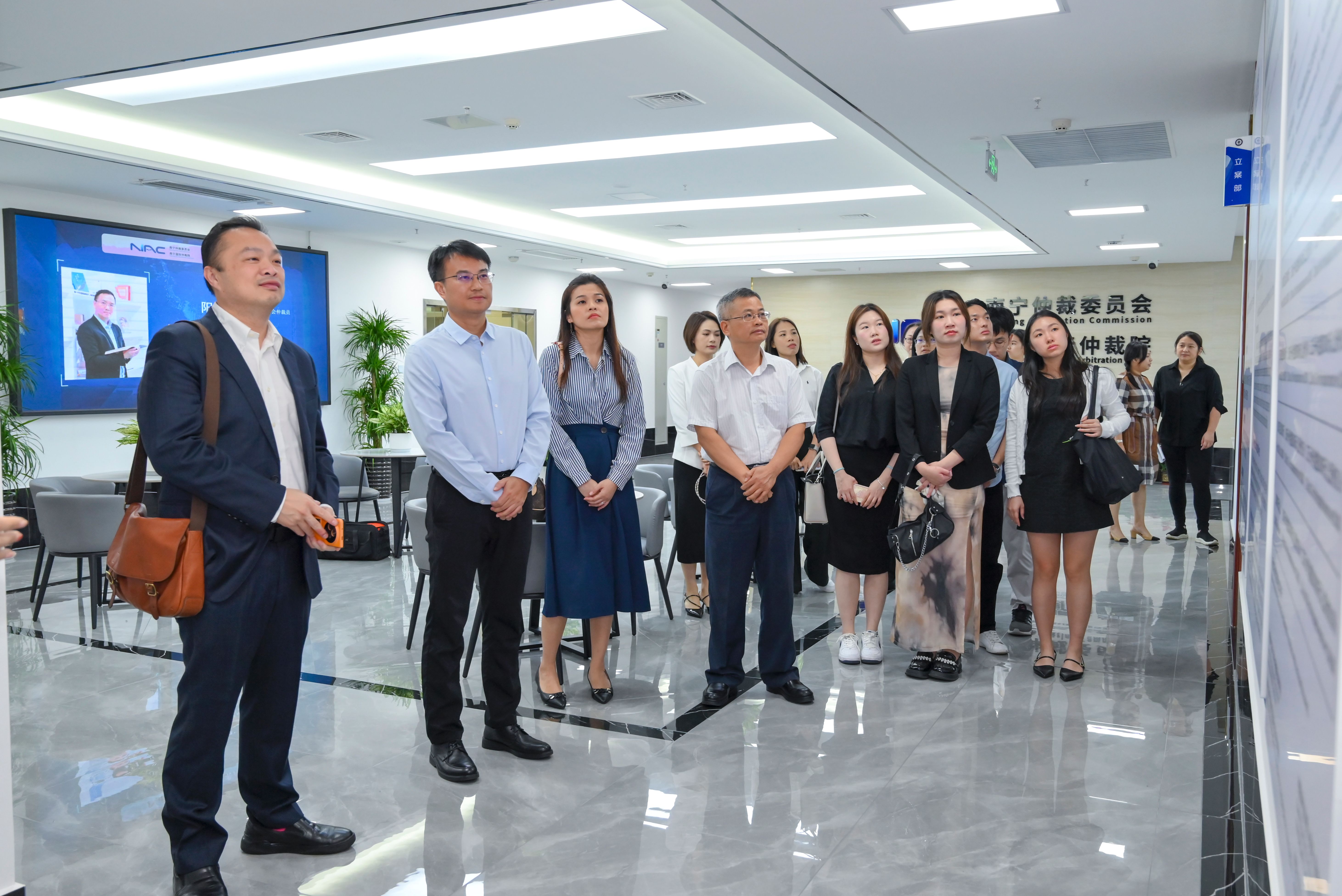 亚洲多元争议解决研究院(AIADR)商务发展和国际关系委员会主任陈行昌律师、南宁仲裁委副主任兼秘书长蓝旭高、副秘书长刘冬冬、颜慧等参加座谈交流。