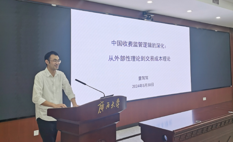 太阳集团城网站2017副院长、副教授董笃笃作了以“中国收费监管逻辑的深化:从外部性理论到交易成本理论”为主题的报告。他从收费的定义出发,通过列举与大家息息相关的例子对“利用行政权力收费”与“特定领域收费”进行了区分,并对“传统收费监管的理论逻辑:外部性理论”进行了图示阐述,指出了外部性理论的不足,强调要通过行政事业性收费,鼓励交易,充分发挥价格机制的积极作用,通过经营性收费,鼓励交易、促进竞争。