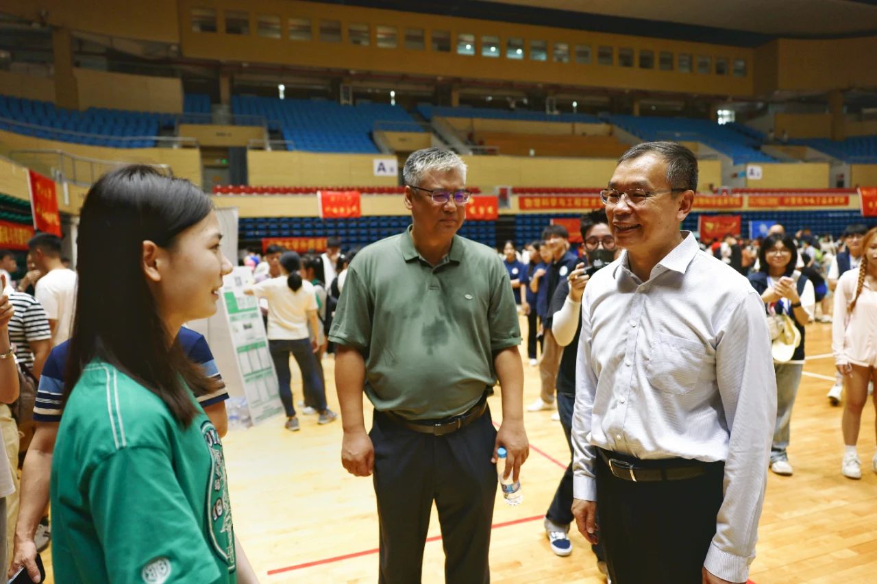 2024年8月31日,校长韩林海,院党委书记余云宇,院长许光耀,院党委副书记韦兴剑等领导到太阳集团城网站2017迎新点看望慰问现场服务的师生志愿者和前来报到的新生。