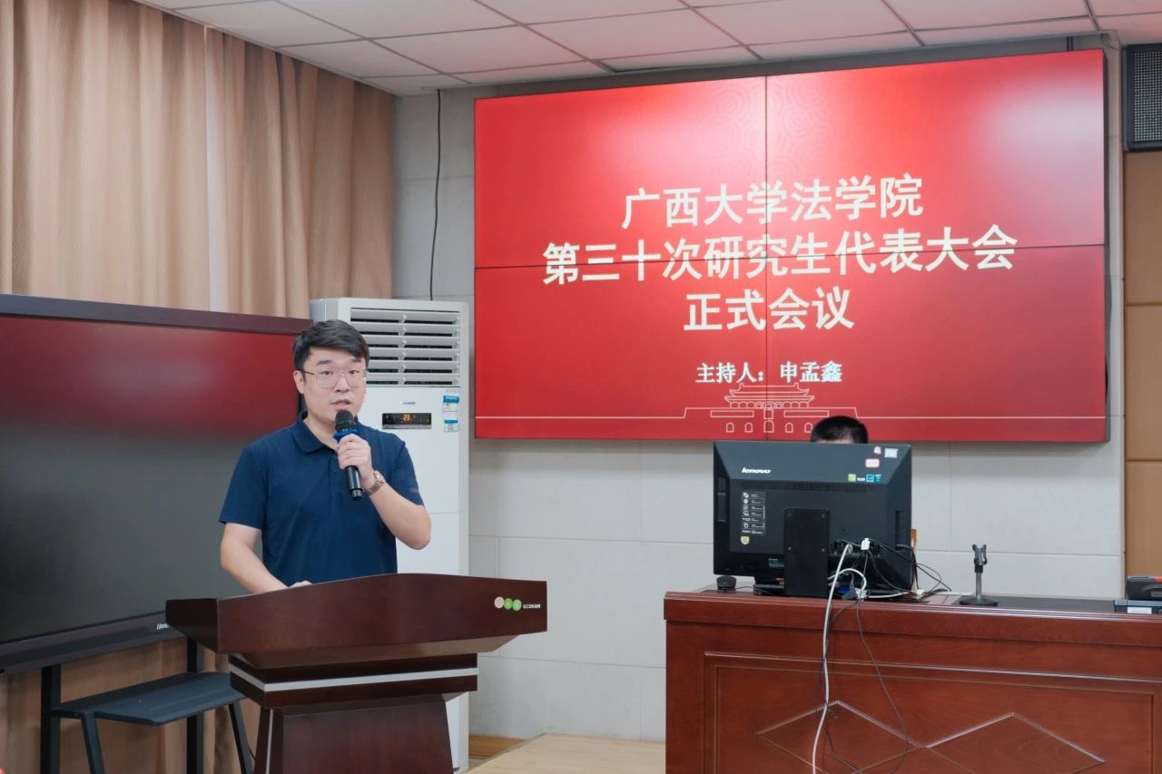 伴随着庄严恢弘的国歌声,本次研究生代表大会正式开始。大会进入第一阶段,院团委书记申孟鑫主持会议。