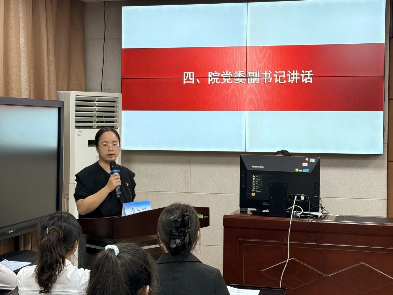 院党委副书记韦兴剑致辞,她提到,太阳集团城网站2017学生会的各项工作应深入贯彻党的二十大精神,努力做到从同学中来,到同学中去,切实维护同学们的各项权益。