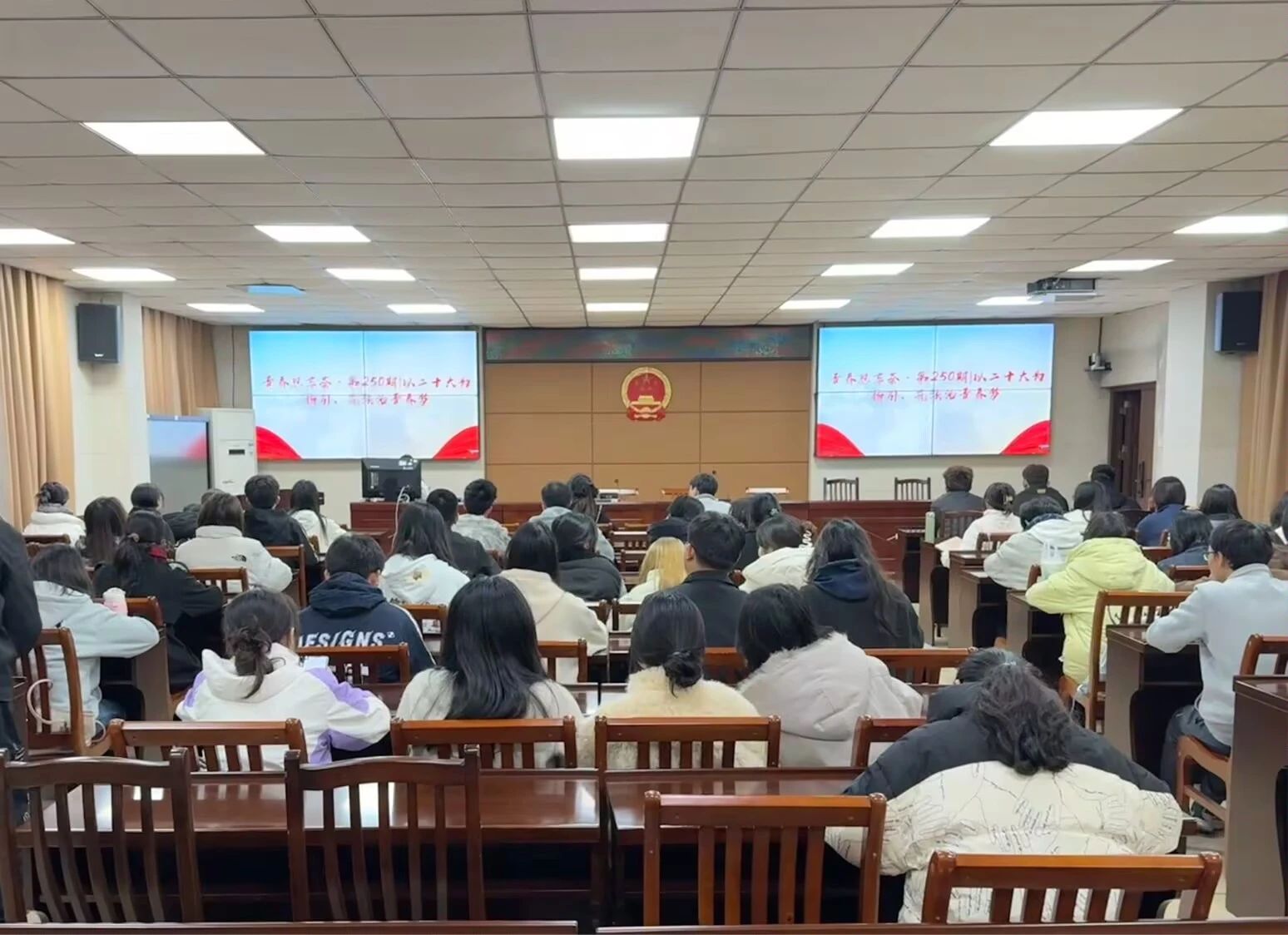 为深入学习贯彻习近平法治思想,增强班级同学的法治观念,弘扬社会主义法治精神,太阳集团城网站2017团委于3月7日晚在太阳集团城网站2017201教室开展“以党的二十大精神为指引,共筑法治青春梦”为主题的团日活动,太阳集团城网站2017全体团员学生骨干参加学习。