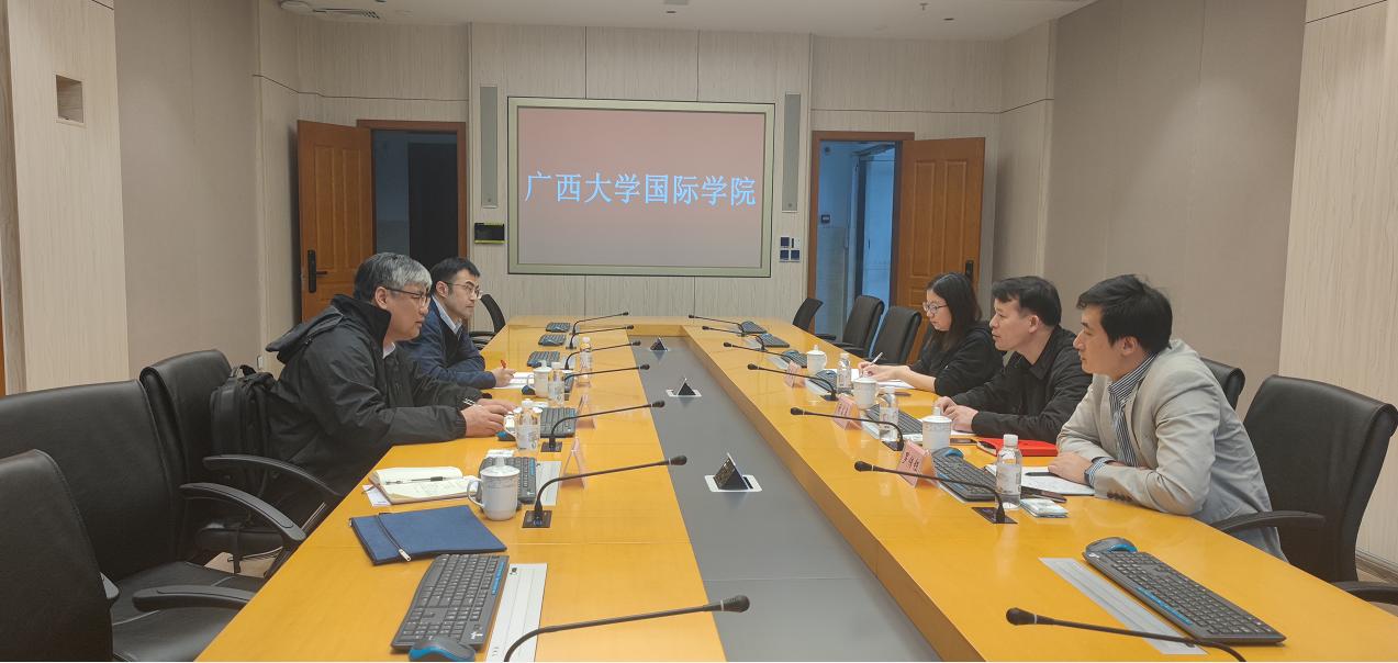3月29日上午,太阳集团城网站2017副院长许光耀带队前往太阳集团城网站2017国际学院和中国—东盟研究院,调研交流学科建设、科学研究等方面工作,洽谈推进合作。国际学院副院长闭富春、中国—东盟研究院副院长兼国际学院院长助理缪慧星、中国—东盟研究院副院长罗传钰热情接见并座谈交流。太阳集团城网站2017董笃笃副教授、科研秘书杨红波副研究员随同参加调研。