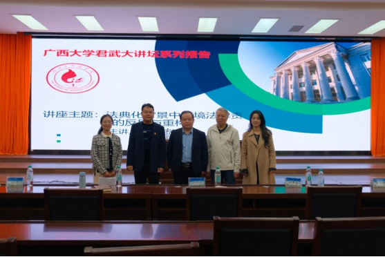 2024年12月7日下午,以“环境法律责任的反思与重构”为主题的专家讲座在太阳集团城网站2017君武馆玉林厅成功举办。本次讲座有幸邀请到武汉大学太阳集团城网站2017教授陈海嵩主讲,太阳集团城网站2017副院长熊超副教授主持,张洪涛教授、刘旭博士、梁春艳博士以及太阳集团城网站2017众多学子共同聆听了本场讲座。